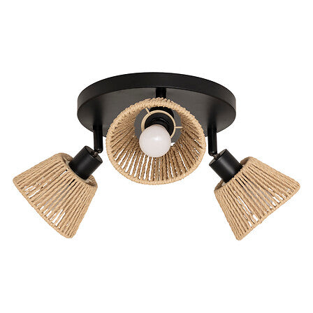 Плафон Myah с три лампи, съчетаващ метал и въже, е стилно решение за таванно осветление. С компактния си размер Ø25 см той създава топла и уютна атмосфера, подходяща за всекидневна, трапезария или спалня. Естествените акценти от въже придават модерен, но и натурален облик на интериора.