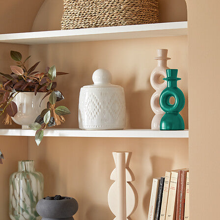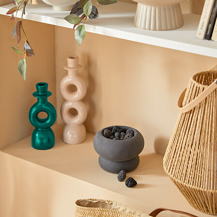 Комплект от два елегантни свещника, изработени от керамика (доломит). С максимална височина 25 см и размери 8 x 8 x 18 см, те са стилен декоративен акцент и могат да се комбинират с други елементи от серията Mala.