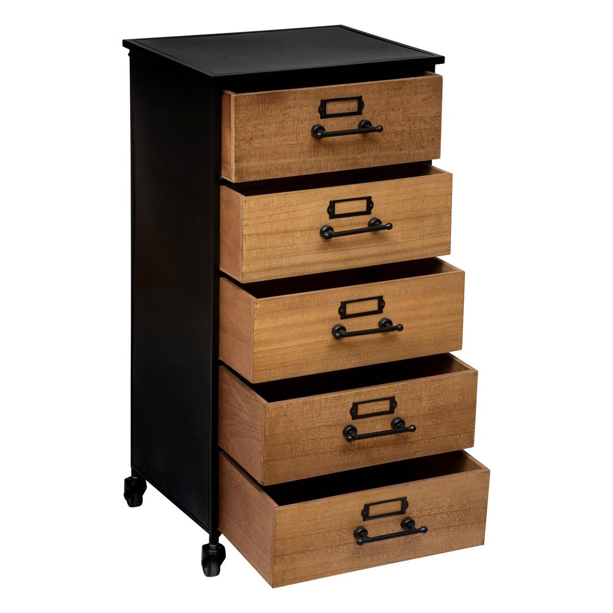 Моделът разполага с 5 удобни чекмеджета (37x32,5x14,8 см), осигуряващи практично място за подреждане на дрехи, аксесоари или документи. Универсалният стил и изчистените линии го правят лесен за съчетаване с различни интериори.