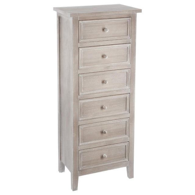 Моделът разполага с 6 удобни чекмеджета, осигуряващи достатъчно място за подреждане на дрехи, аксесоари или документи. Високата конструкция съчетава функционалност и естетика, позволявайки лесен достъп до съдържанието и ефективно съхранение без загрозяващ вид.