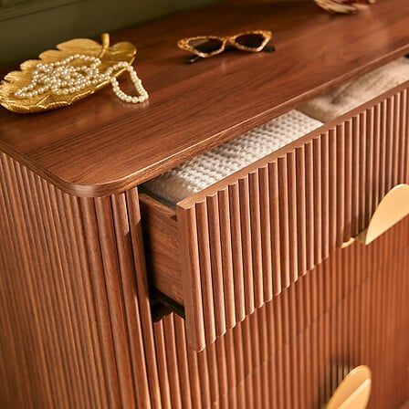 Детайли: 4 чекмеджета, канелени фасади, матова повърхност, FSC сертифициран