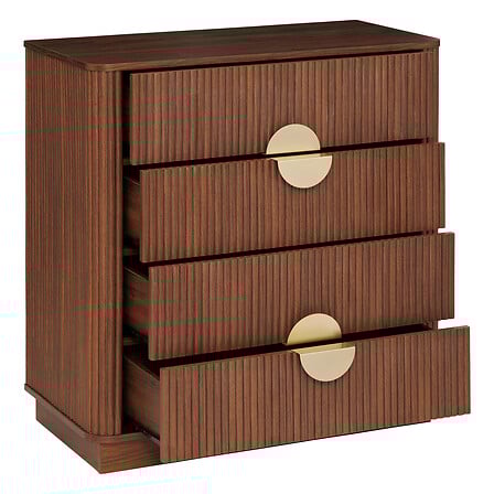 Скринът разполага с 4 просторни чекмеджета, предлагащи практично решение за съхранение в спалнята, хола или коридора. Произведен е от FSC сертифицирани материали, което гарантира устойчиво и отговорно производство.