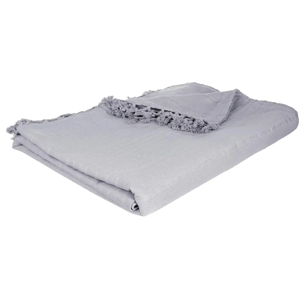 Покривалото за легло от 100% памук носи естествен комфорт и свежа визия в спалнята. Неговата щедра големина и текстуриран райетен десен го правят прекрасен акцент върху двойно легло. Завършващите ресни подчертават уютния, непретенциозен стил.