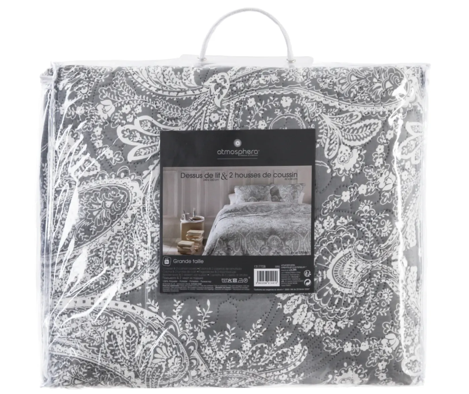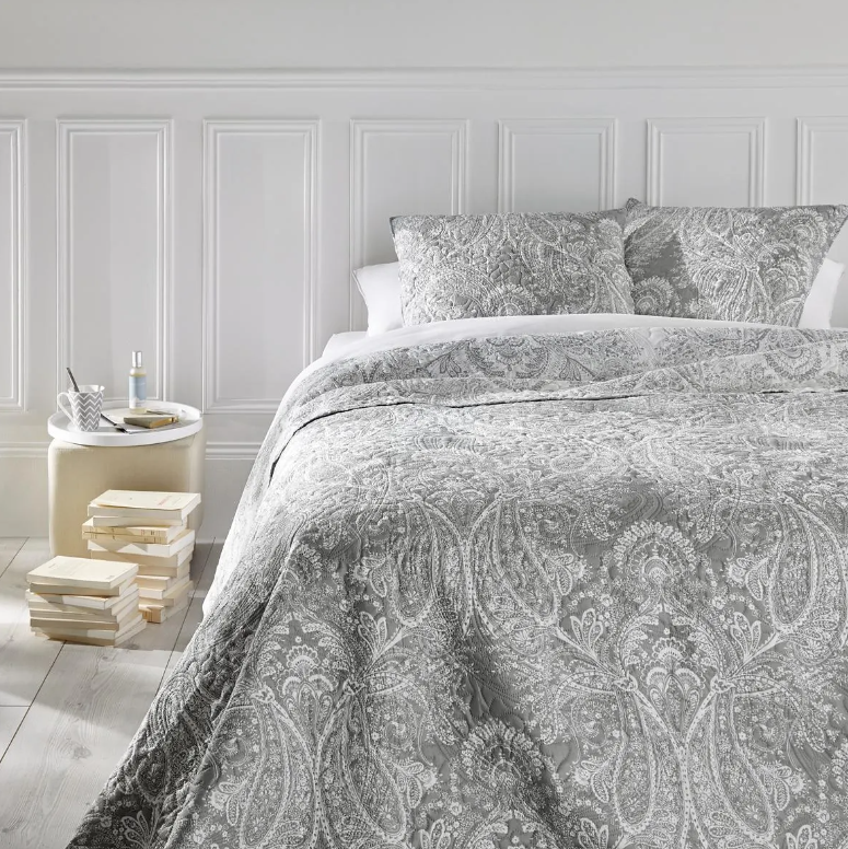 Комплектът впечатлява с изискан пейсли десен, който придава романтична и нежна атмосфера в спалнята. Покривалото е с щедри размери, подходящи за голямо двойно легло, а включените две калъфки завършват елегантно цялостната визия.