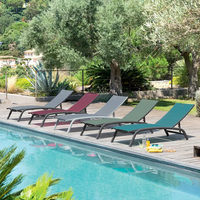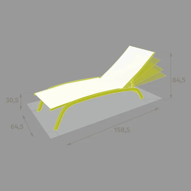 Стилен и практичен алуминиев шезлонг от Hesperide, създаден за максимален комфорт на терасата, в градината или край басейна. Леката, но здрава алуминиева конструкция осигурява отлична устойчивост при ежедневна употреба и улеснява преместването според слънцето и сянката.