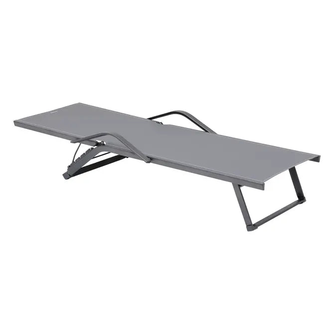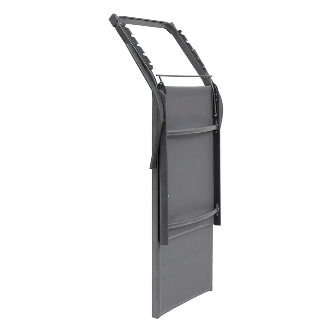 Практичен и елегантен сгъваем шезлонг, създаден за комфорт на открито – в градината, на терасата или край басейна. Леката, но стабилна алуминиева конструкция осигурява устойчивост на атмосферни влияния и лесно преместване, а сгъваемият дизайн позволява удобно съхранение, когато не се използва.
