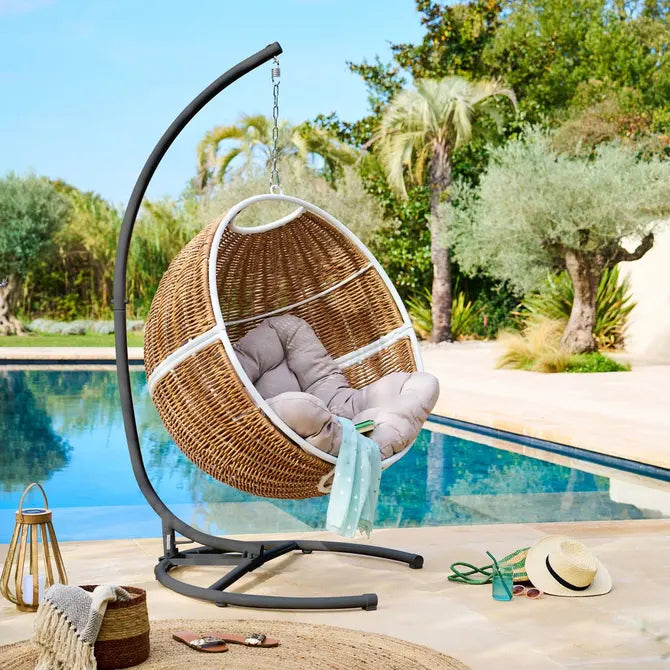 Стабилна и практична стойка за висящо кресло от Hesperide, създадена за сигурно окачване и комфортно люлеене както на открито, така и в интериора. Здравата конструкция осигурява надеждна опора и устойчивост при ежедневна употреба, а балансираният дизайн позволява лесно позициониране в градина, тераса, двор или всекидневна.