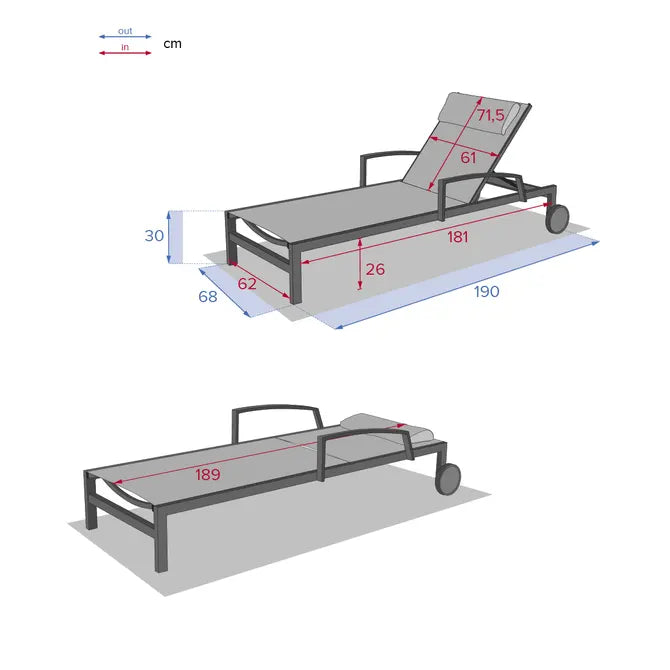 Алуминиев шезлонг с колелца Hesperide Ocala, Антрацит/Графит