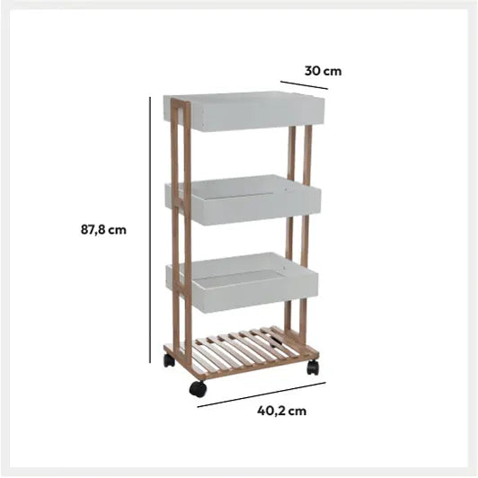 Тази етажерка е практично решение за всеки, който търси функционален и гъвкав органайзер. Комбинира удобството на мобилността с достатъчно място за организиране на дребни и по-обемни предмети, като улеснява ежедневните задачи и подобрява реда в дома или работната среда.