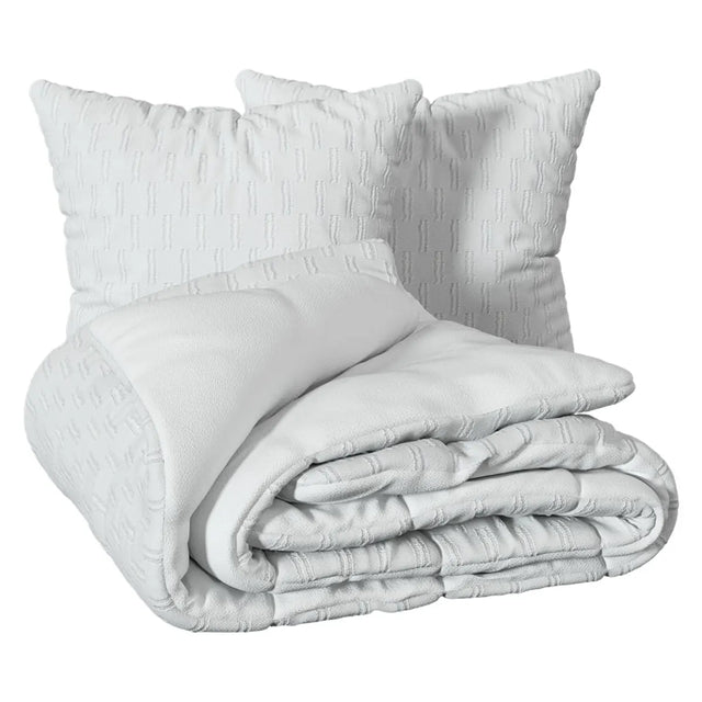 Подарете си елегантност и уют в спалнята с комплекта спално бельо, изработен от висококачествена микрофибърна материя. Предната страна е с фин жакардов релеф в снежнобял цвят, който придава изискан и модерен характер на леглото, докато задната страна от мека микрофибра осигурява комфорт и нежност при допир. Материята е лека, гладка и приятна за кожата, като същевременно е устойчива и лесна за поддръжка.