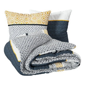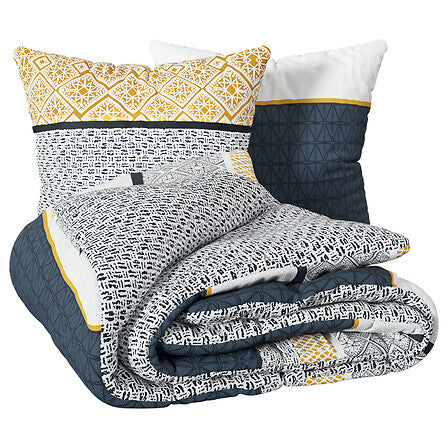 Комплектът е двулицев с напълно реверсивен дизайн, което ви позволява лесно да променяте визията на спалнята според настроението си. Практичен и функционален, той включва плик за завивка и удобни квадратни калъфки за възглавници, създавайки завършен и хармоничен вид на леглото.
