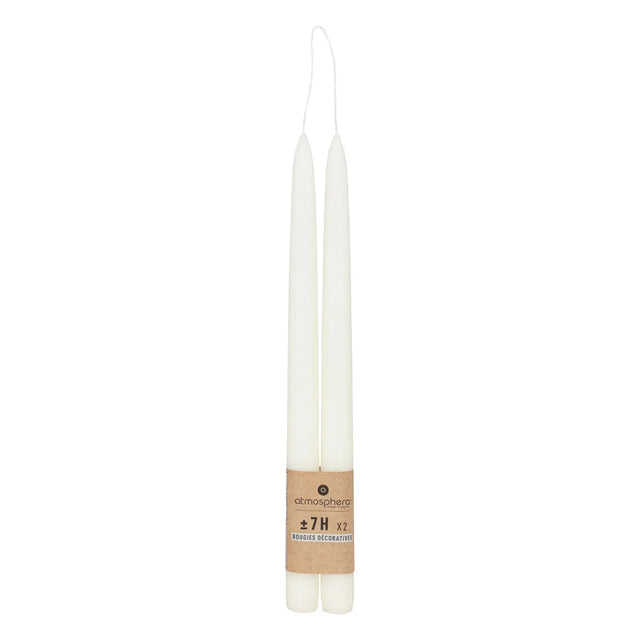 Създайте топла и стилна атмосфера с комплект от две безароматни свещи от марката atmosphera. Тези елегантни свещи предлагат чисто, ненатрапчиво осветление, подходящо за помещения и поводи, в които ароматите не са желани.