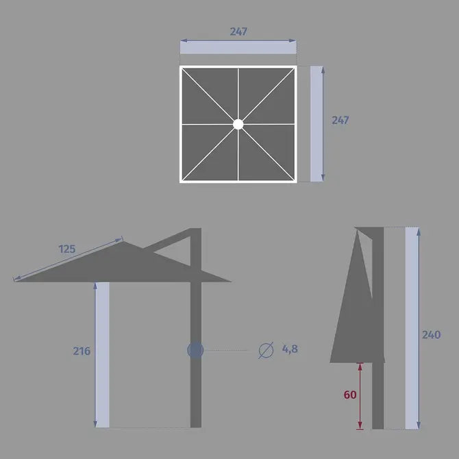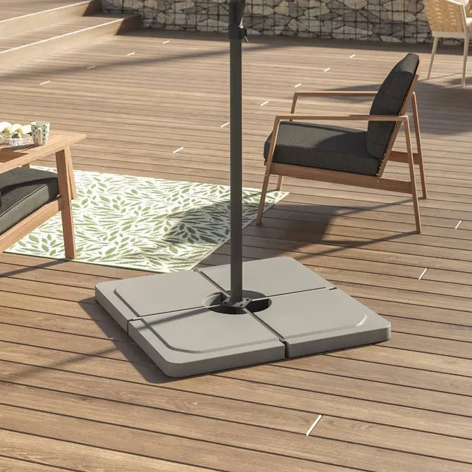 Насладете се на комфортна сянка и стилна визия на терасата, в градината или край басейна с градински чадър със странична стойка. Квадратният сенник осигурява широко покритие и повече свободно пространство под него, тъй като основата е изнесена встрани – идеално решение за маси за хранене и зони за отдих.
