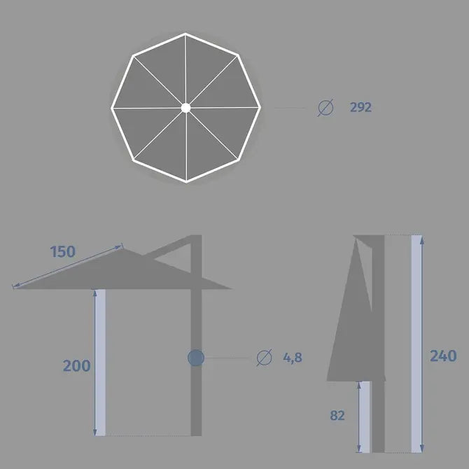 Създайте комфортна сянка и стилна зона за отдих на терасата или в градината с градински чадър със странична стойка. Конструкцията с изнесена опора освобождава пространството под сенника и осигурява повече място за маса и столове – идеално решение за двор, балкон, веранда, заведения и зони около басейн.