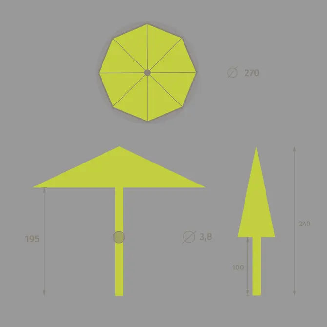 Прав накланящ се чадър Hesperide Sisko, Спици от фибростъкло, 2.7 m