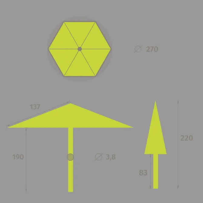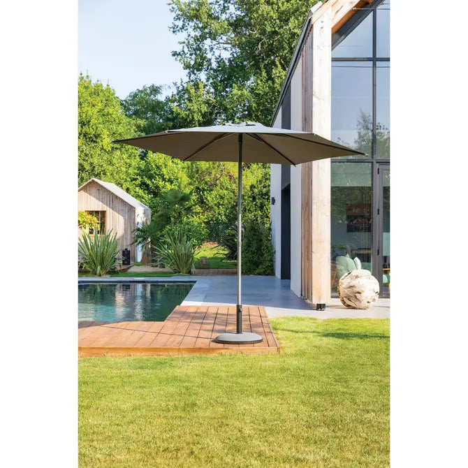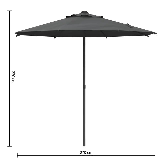 Стабилната конструкция е подходяща за ежедневно ползване в домашни и ваканционни пространства, а изчистеният дизайн се вписва естествено в различни стилове градински мебели. Идеален избор за обособяване на зона за хранене или релакс на открито, този чадър съчетава функционалност, удобство и елегантна визия.
