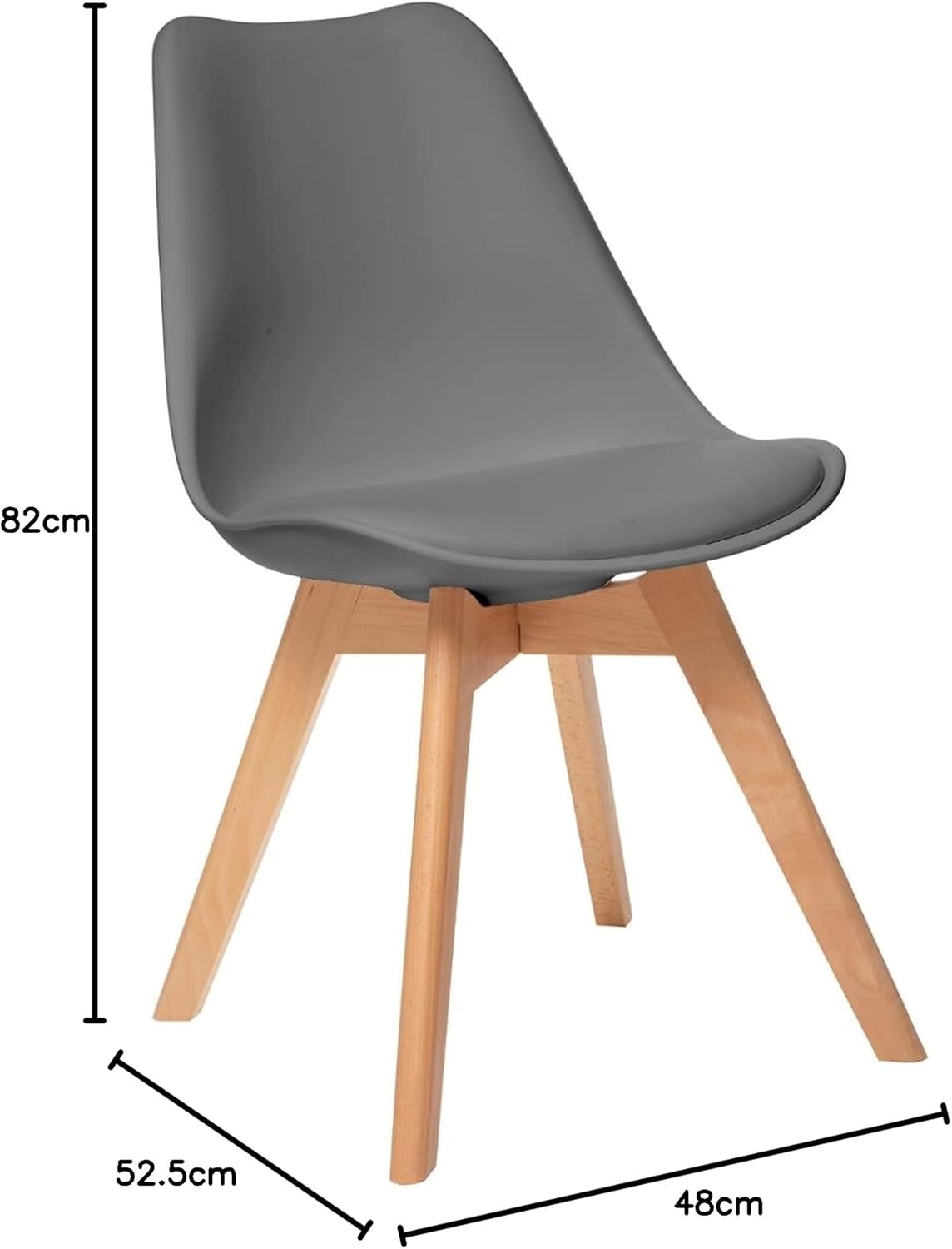 Ширина 52,5 см, дължина 48 см, височина 82 см. Дължина на седалката 48 см, дълбочина на седалката 41 см, височина на седалката 46 см. Височина на облегалката 37 см, височина на краката 38 см. Тегло 4,4 кг.