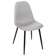 Столът Tyka съчетава здравина и комфорт в модерен дизайн. Стоманените крака осигуряват стабилност, а тапицираната облегалка с плътност 30 кг/м³ предлага удобно усещане при сядане. Материята е устойчива на пилинг със степен 4, което гарантира дълготрайна издръжливост. Лек и лесен за сглобяване, столът е чудесен избор за съвременни трапезарии и се комбинира отлично.