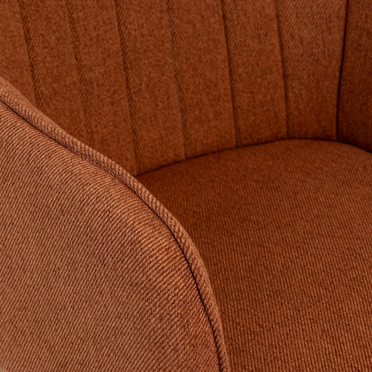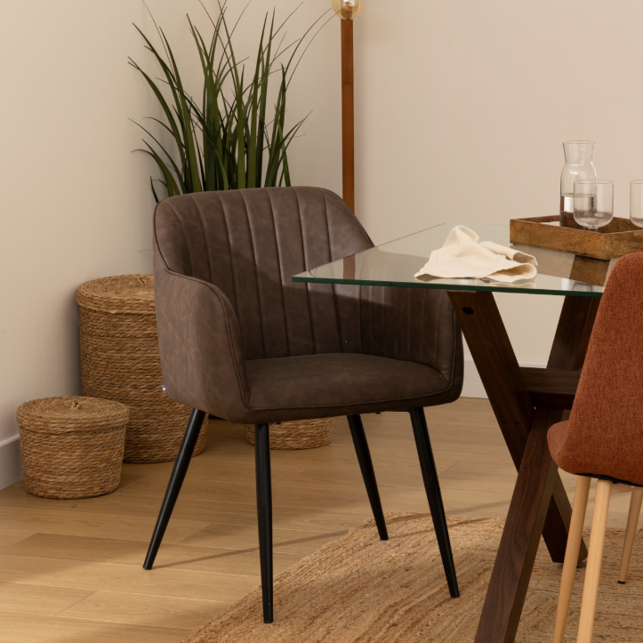 Столът впечатлява с модерна визия и приветливи линии, които лесно се вписват във всеки съвременен интериор. Металните крака създават стилен контраст с текстилната тапицерия, а релефът на облегалката и подлакътниците придава допълнителен чар. Практичен и универсален, този модел е подходящ за всекидневна, спалня или офис. С чаша кафе и книга в ръка ще се насладите на истински мигове на уют и релакс, а поддръжката е лесна – достатъчна е мека четка за освежаване на плата.