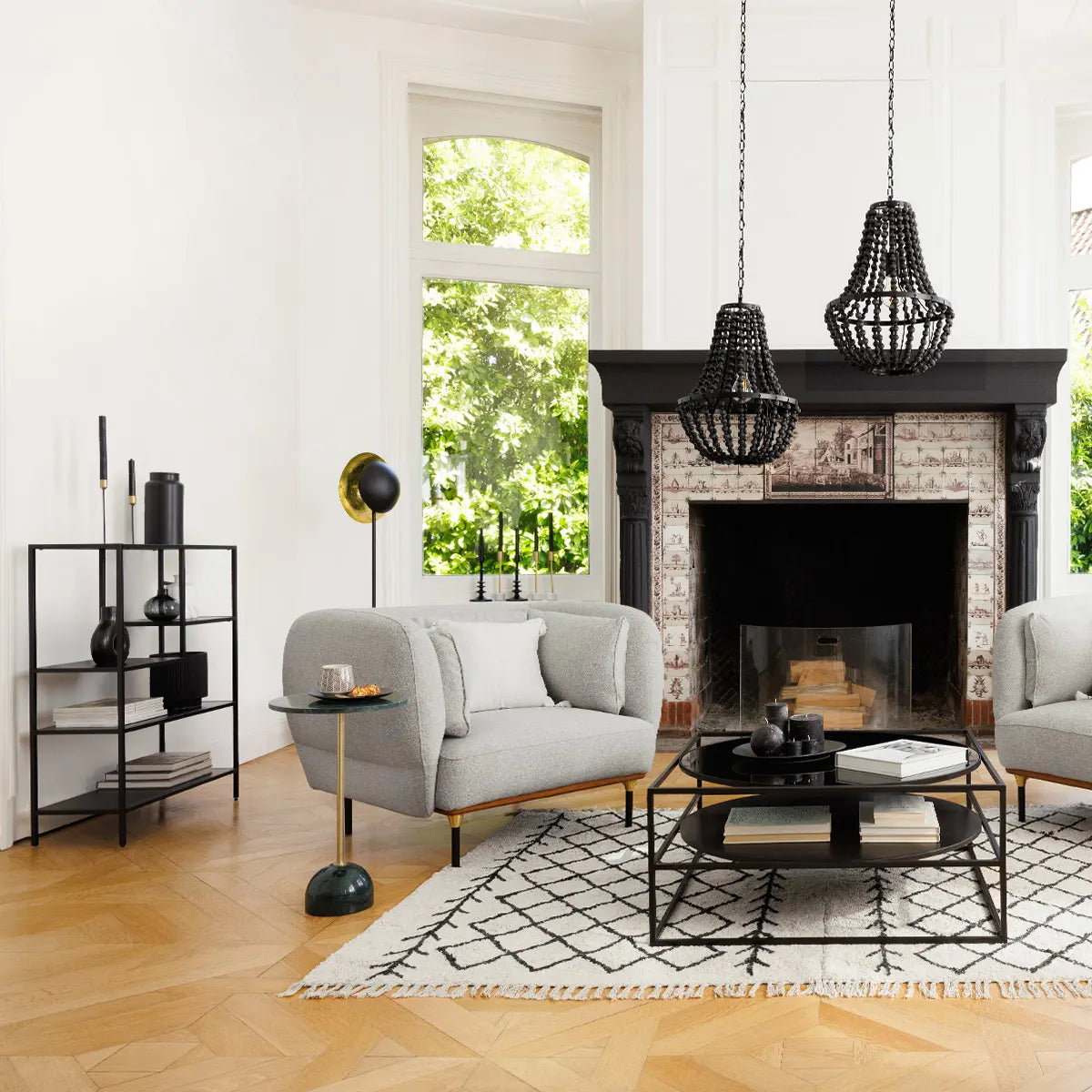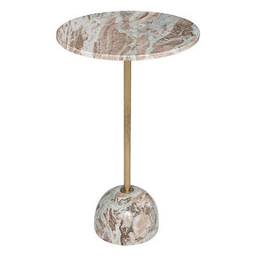 Практична и лесна за поддръжка: мраморният плот издържа на ежедневна употреба и се почиства лесно с мека кърпа, а металната рамка осигурява надеждна опора. Благодарение на балансирания си вид, тази маса служи както като акцентна мебел за декора, така и като функционална повърхност за книги, чаши и декоративни елементи.