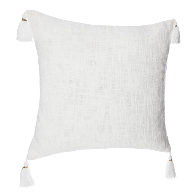 Калъфка за възглавница от мек памук с декоративни пискюли със златист акцент, които добавят стил и изисканост. Практичният цип позволява лесно сваляне и поддръжка. Подходяща е за диван, кресло или спалня, като внася уют и елегантен завършек в интериора.