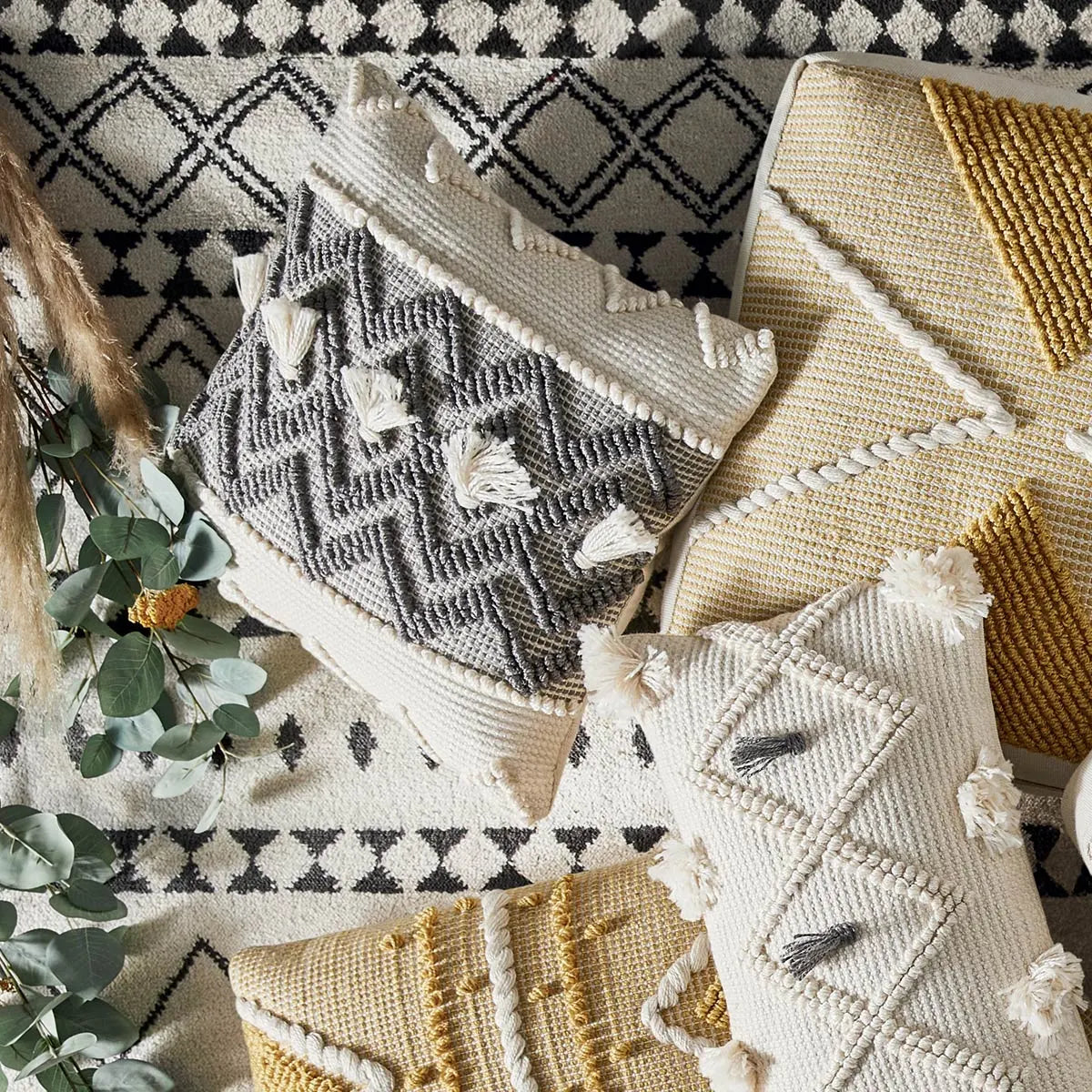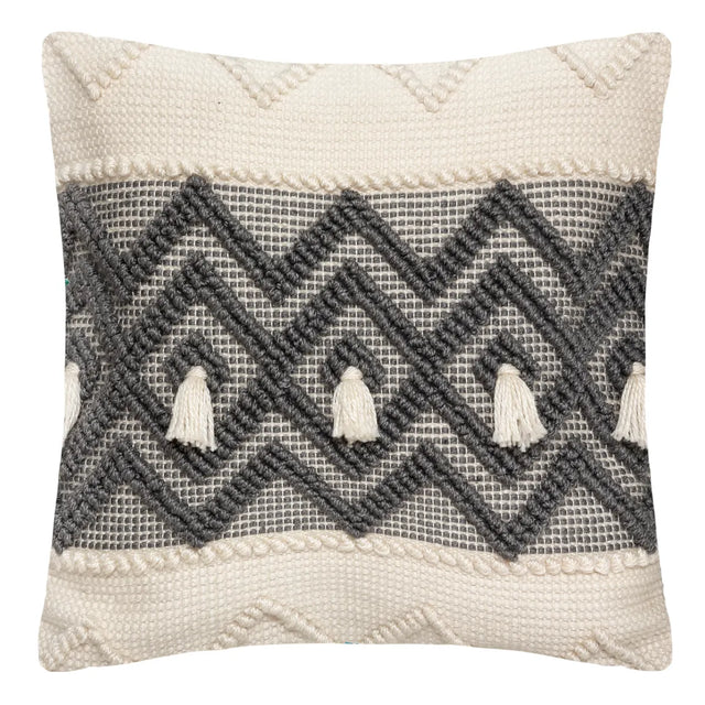 Декоративна възглавница с ефектен дизайн, съчетаващ игриви пискюли и модерен стил. Изработена от полиестер, тя е мека, устойчива и подходяща за ежедневно ползване. Калъфката е сваляща се с цип за лесно почистване и поддръжка.
