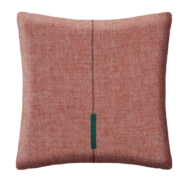 Състав: лен, памук и полиестер. Пълнеж: 100% полиестер. Декорация: предна част от ленен шамбре с бродерия, задна част от памук, цип на 3/4 от гърба. Принт: реактивно боядисване.
