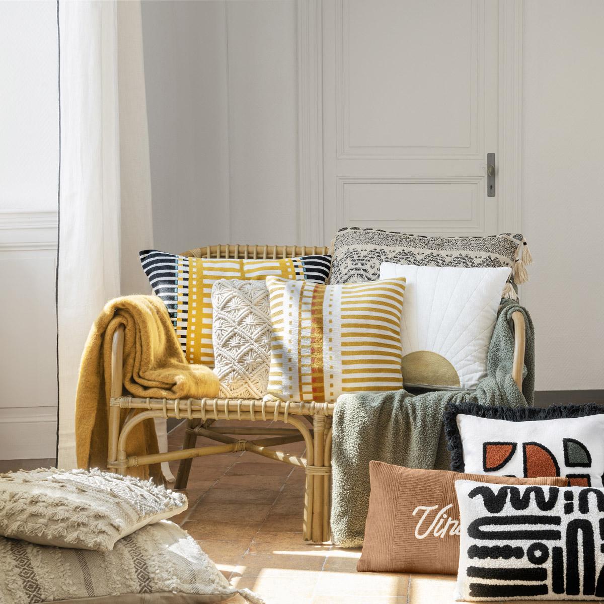 Декоративна възглавница, изработена от комбинация от естествени и рециклирани материали. Осигурява мекота и комфорт, като същевременно е устойчива и екологично отговорна. Универсалният дизайн я прави подходяща за всекидневна, спалня или офис, където добавя уют и стил.