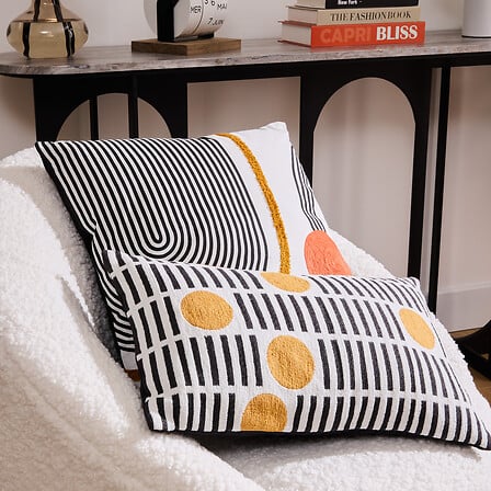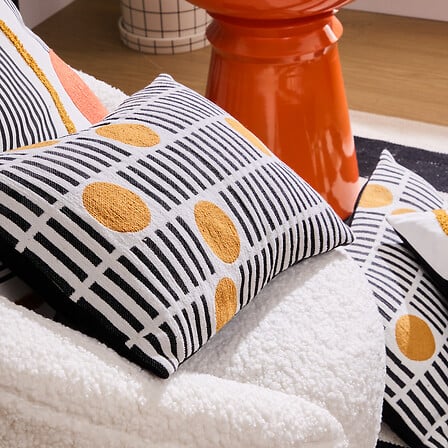 Декоративна възглавница с елегантен втъкан мотив, обогатен с материя „шенила“, която придава фин блясък и приятно меко усещане. Съчетава естествеността на памука и издръжливостта на полиестера. Подходяща е за диван, кресло или спалня, като внася стилен и уютен акцент в интериора.