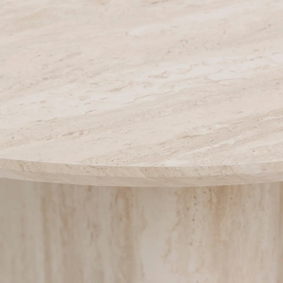 Допълнителни детайли: Овален плот с ефект травертин – придава визията на естествен камък без неговите недостатъци (грапавини, тежест). Полиуретаново покритие, матова и текстурирана повърхност, предпазни подложки.