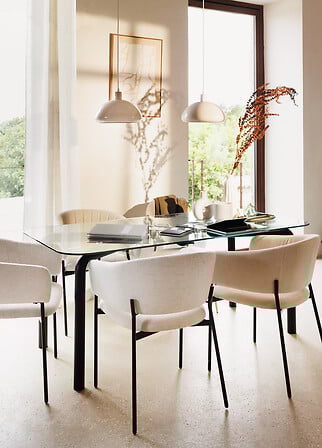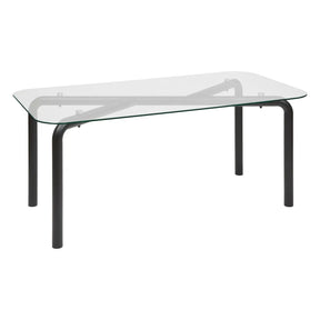 Допълнителни детайли: Правоъгълен плот със заоблени ръбове от прозрачно закалено стъкло в ретро стил – устойчиво на удари, вода и петна. Метални крака от извити стоманени тръби с матово покритие. Регулируеми предпазни подложки. Разстояние между краката: 148 см / 59,5 см.