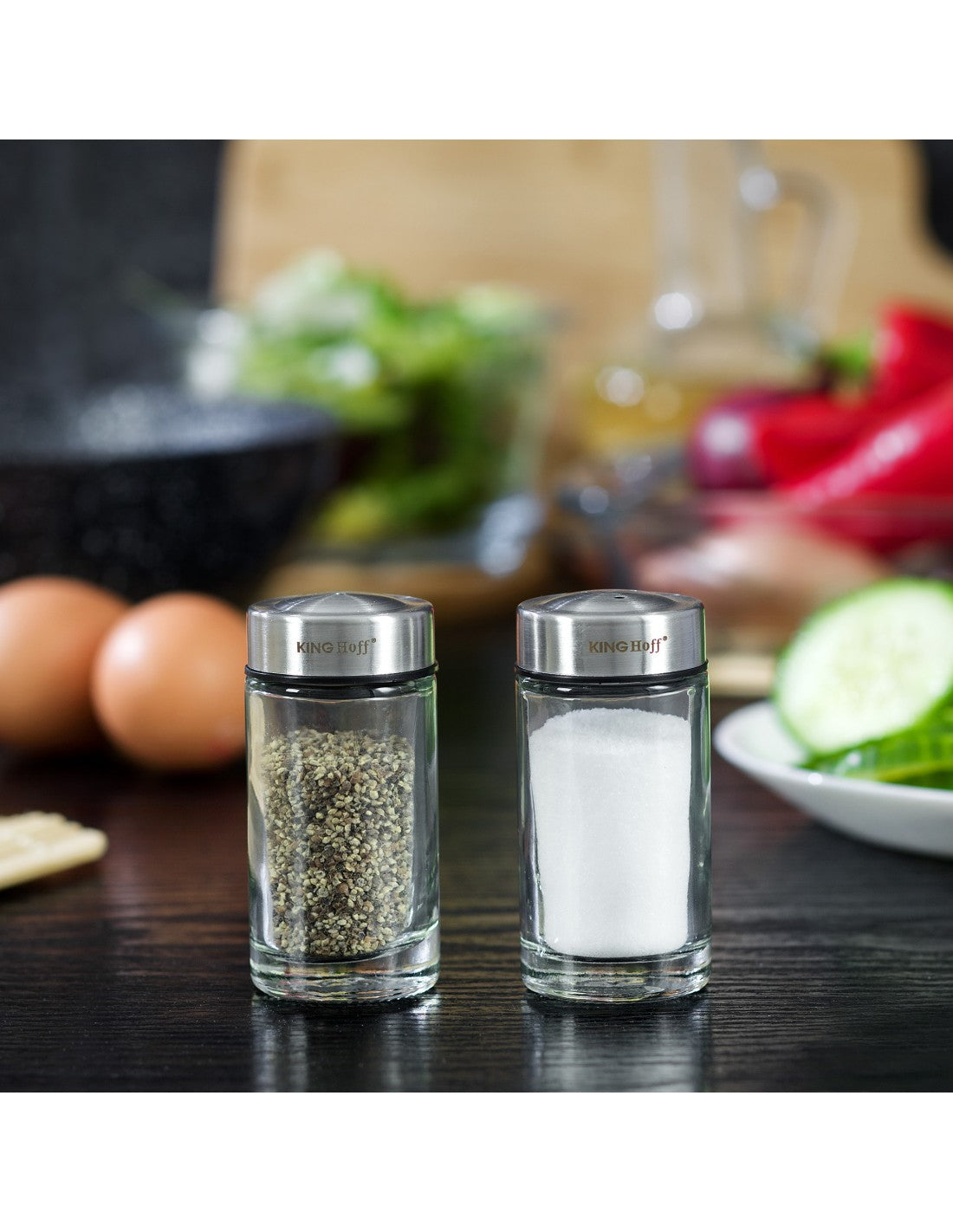 Комплект сол и пипер KingHoff 1642, Стъкло, 8.7x4.5x9.5cm