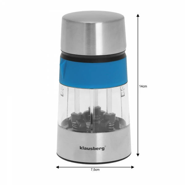 Тройна мелница Klausberg е подходяща за смилане на пипер и сол, лесна е за употреба и зареждане. Има възможност за регулиране на едрината на смилане.