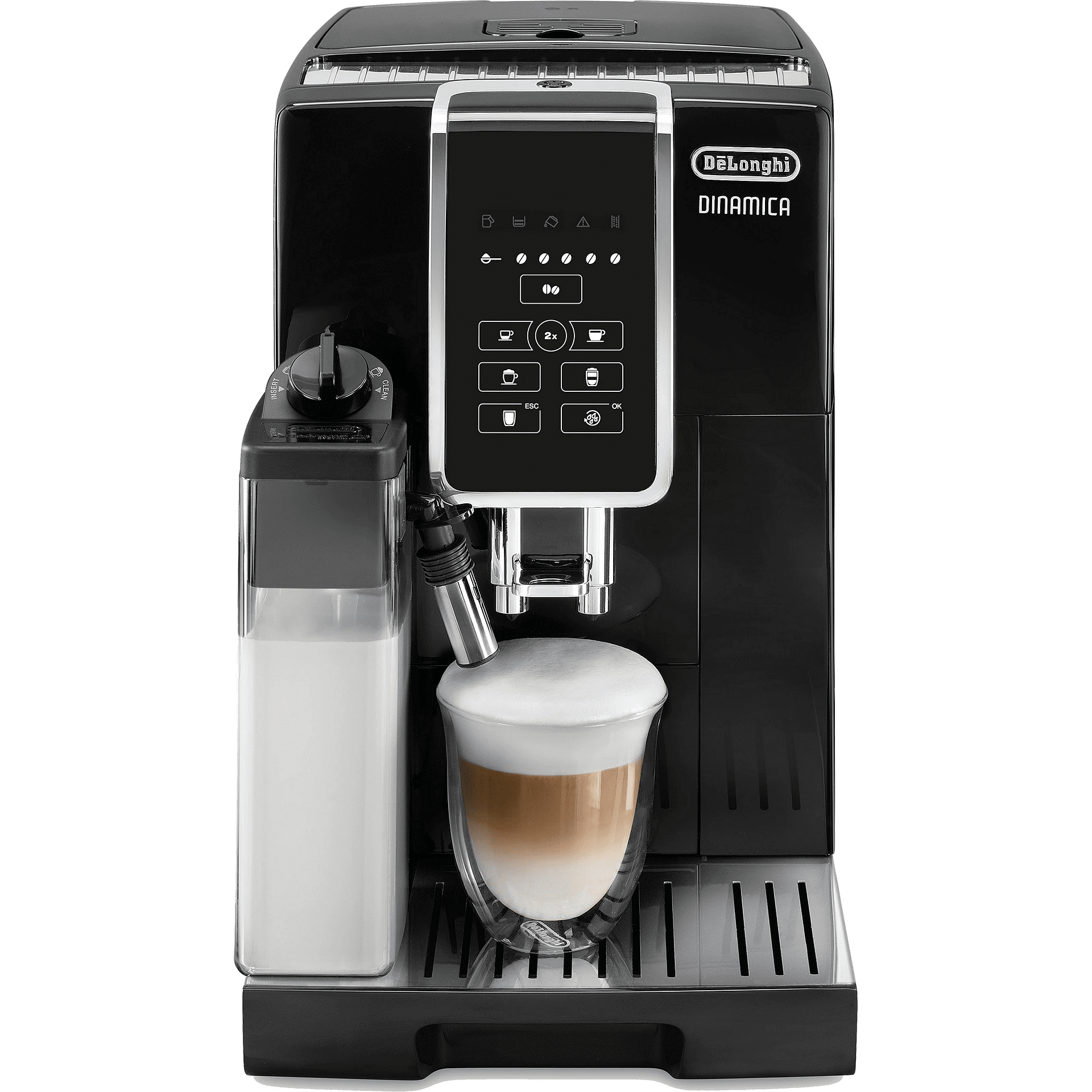 С едно натискане на бутон, кафеавтомата Dinamica ECAM 350.50.B приготвя кафе и млечни напитки като еспресо, кафе, капучино или лате макиато.