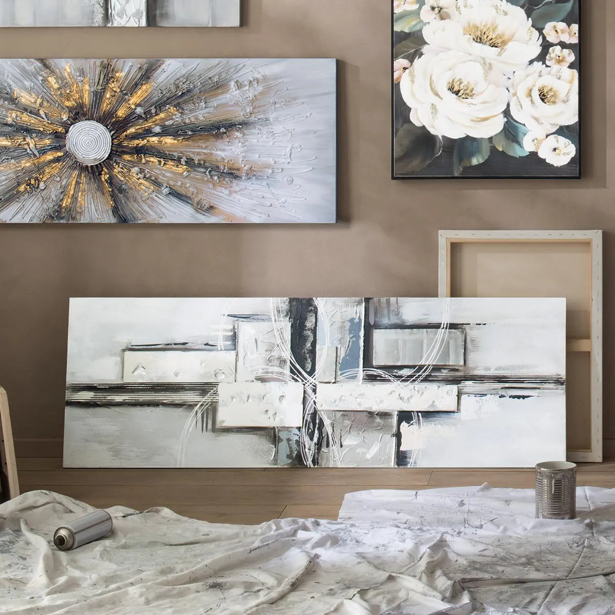 Картина atmosphera Kylia, Ръчно рисувано платно 150x150 см, Сребърна, Асорти дизайни