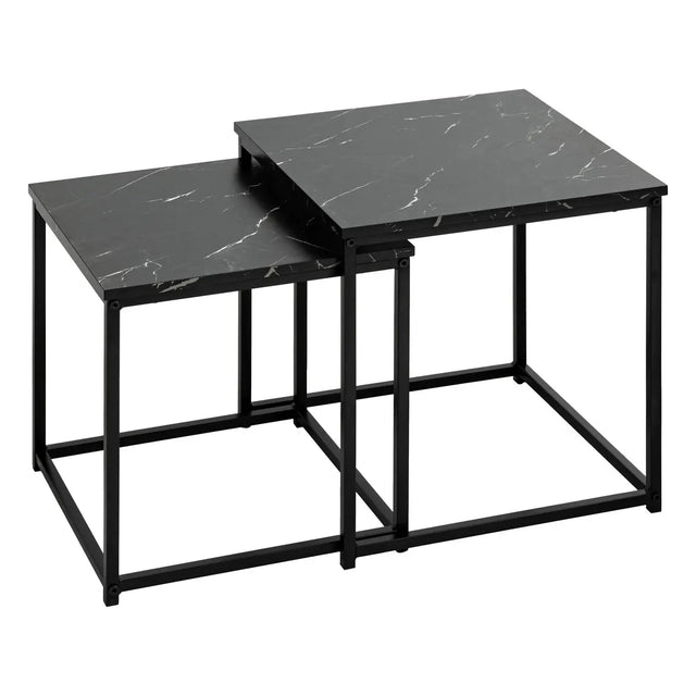 Модерен комплект от две маси със стоманена конструкция и плот от MDF. Практични и компактни, те могат да се използват заедно или поотделно според интериора.