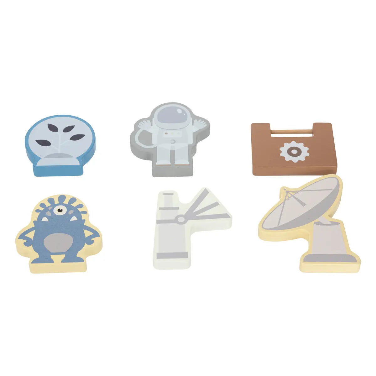 Тази ракета е както играчка за строителство, така и за въображение, благодарение на 6 фигурки, които ще вдъхнат живот на историите на вашето дете. Дървената играчка ще развие въображението и креативността на вашия малчуган, докато се забавлява.