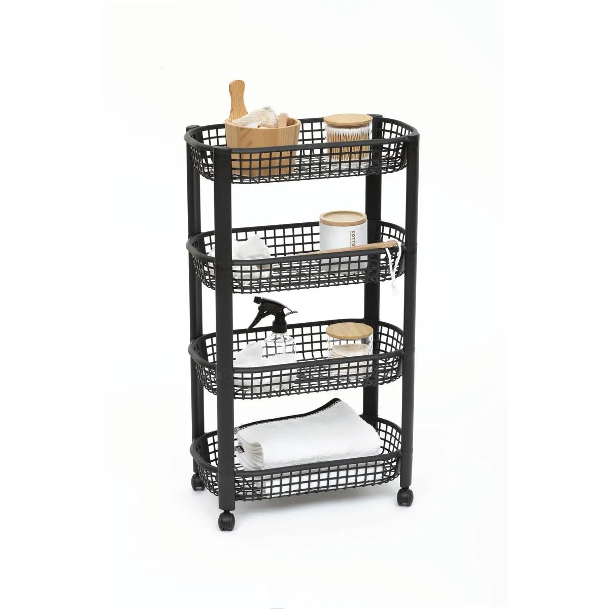 Практична и лека пластмасова количка, проектирана да улесни подредбата и преместването на нещата в дома. Многофункционален органайзер с няколко нива/кошници, който осигурява бърз достъп до прибори, подправки, хранителни продукти или почистващи препарати—перфектен за кухнята, банята, пералното помещение или работния кът.