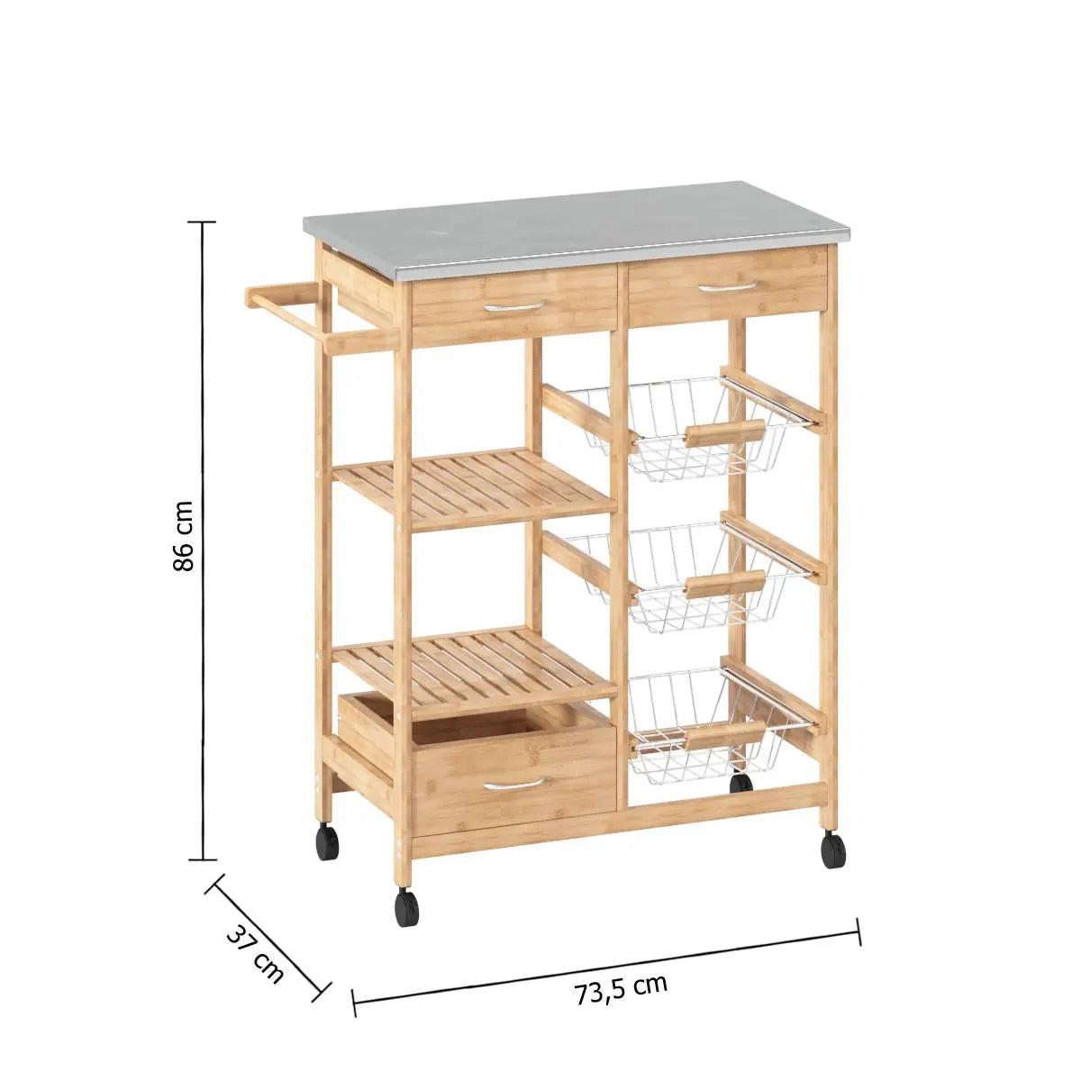 Кухненска количка 5five, Голяма, Бамбук, С метален плот