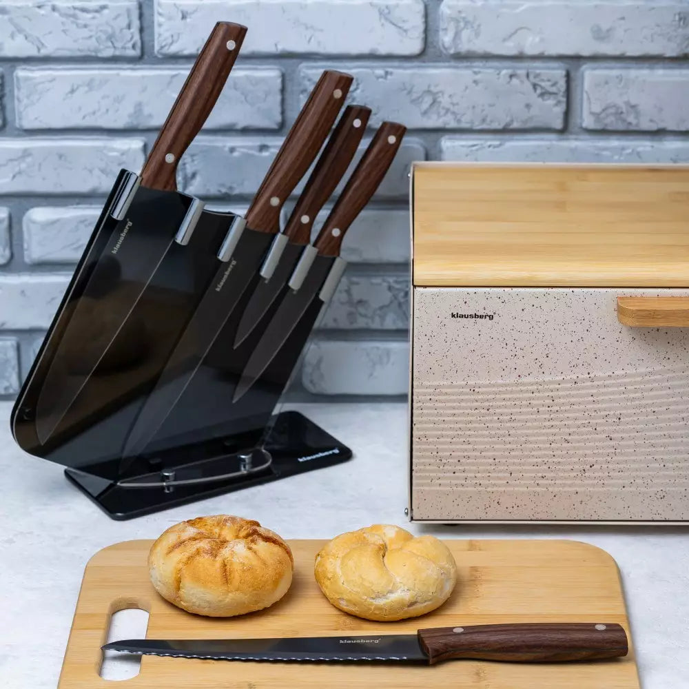 Комплект ножове със стойка Klausberg 7616, 6 части, Инокс, Кафяв/Сив
