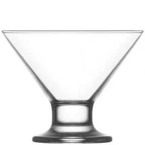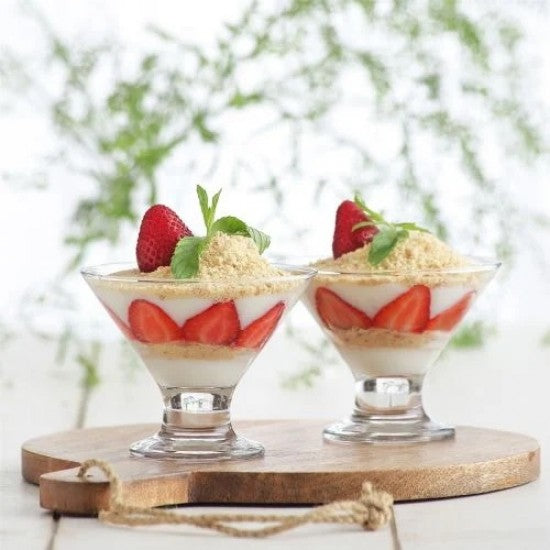 Луксозен комплект от 6 броя конусовидни десертни стъклени чаши със столче. Тези елегантни чаши са идеални за сервиране на сладолед, сорбе, десертни кремове, мелби и дребни плодове. Подходящи както за домашна употреба, така и за заведения
