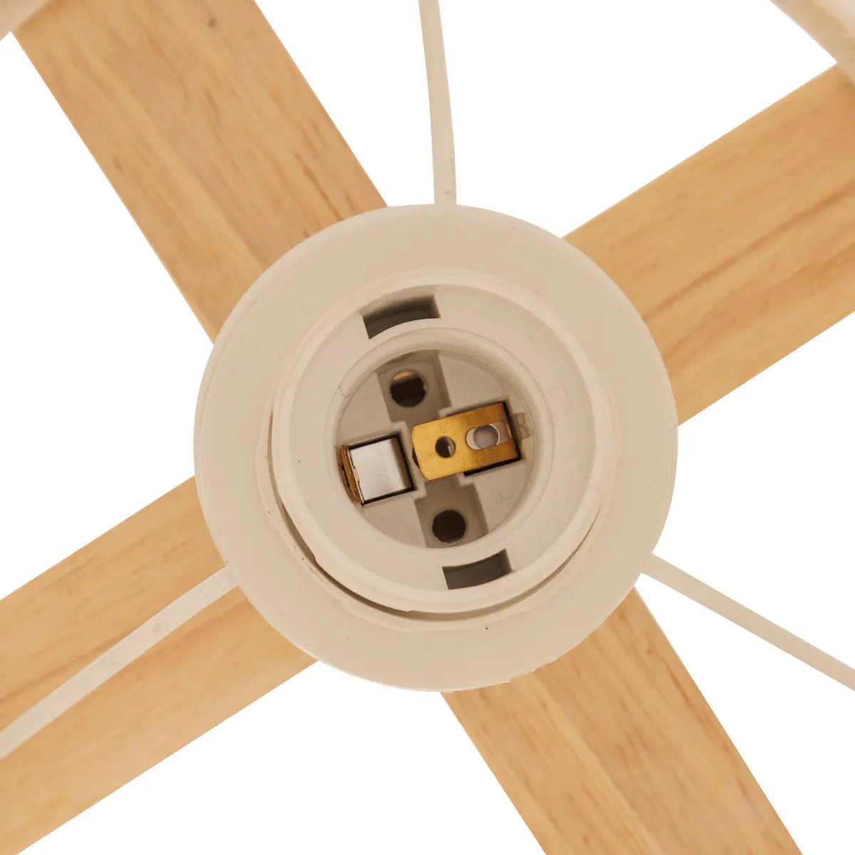 Настолна лампа с размери 18 x 18 x 37 см, изработена от дърво хевея и PVC. Естествената дървесна структура внася топлина и уют, докато PVC елементите придават практичност и издръжливост. Със своя изчистен и универсален дизайн лампата е подходяща за спалня, всекидневна или офис. Крушка не е включена в комплекта.