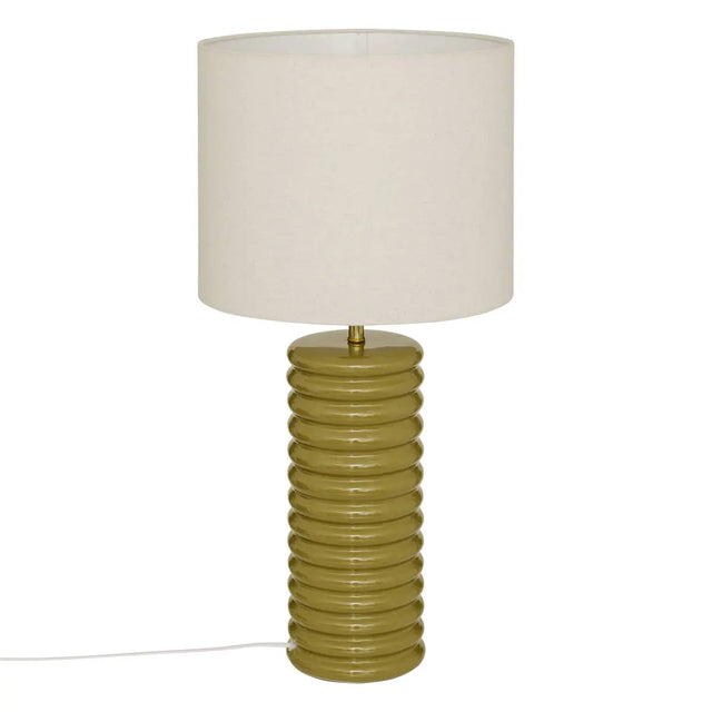 Настолна лампа с внушителни размери Ø32,5 x В69 см, изработена от висококачествена керамика (stoneware). Стабилната и елегантна основа придава луксозен характер, който превръща лампата в акцентен елемент за по-големи помещения. Благодарение на своята височина и изчистен дизайн тя е подходяща за конзолни маси, всекидневни и просторни спални. Крушка не е включена в комплекта.