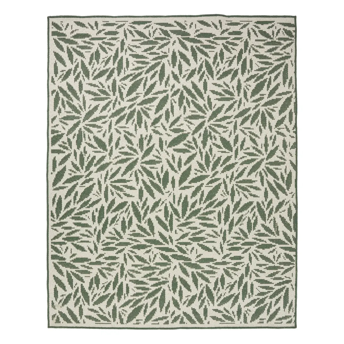 Килим от полипропилен, подходящ за външна употреба. Издръжлив, лесен за поддръжка и устойчив на износване – идеален за тераси и балкони. Зелената флорална визия внася свежест и естествен чар във външното пространство.