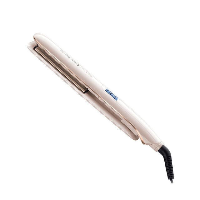 Преса за изправяне Remington PROluxe S9100, Керамични плочи Ultimate Glide, OPTIheat, 230°, LCD, 9 степени на температура, Бързо загряване, Бял