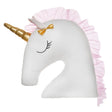 Тази възглавница във форма на глава на еднорог ще очарова всички мечтатели. Нейният рог е съчетан с малката панделка, за да създаде светъл и вълшебен ефект. Нежната гривна от тюл добавя романтичен щрих към целия вид.