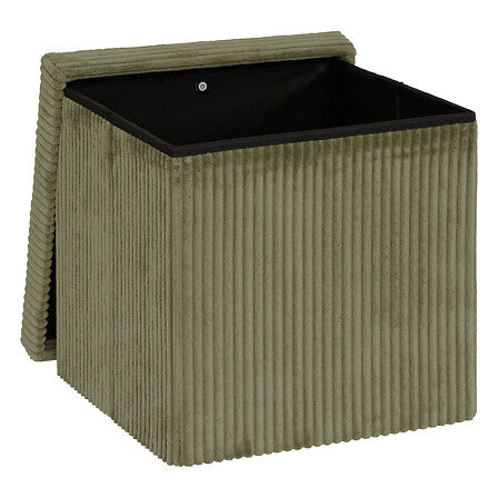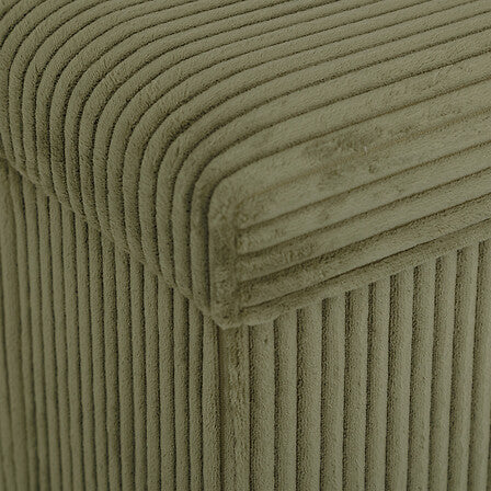 Характеристики: Многофункционален пуф със съхранение и сгъваем дизайн, облицован с приятно на допир рипсено кадифе. Практичен аксесоар за дома, който комбинира комфорт и функционалност и служи както за сядане, така и за организиране на вещи.