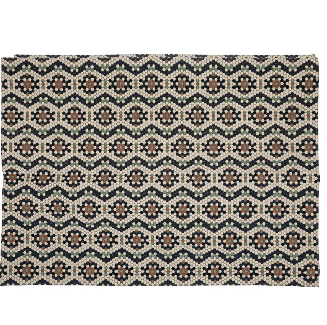 Правоъгълният памучен килим впечатлява с естествена текстура и лека изработка. Благодарение на мекотата на памука той създава уютна и комфортна атмосфера, подходяща за всекидневна, спалня или трапезария. Универсалният му дизайн позволява лесно съчетаване с различни стилове интериор.