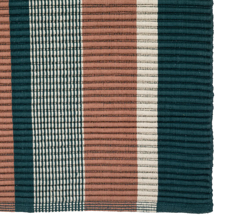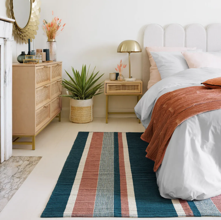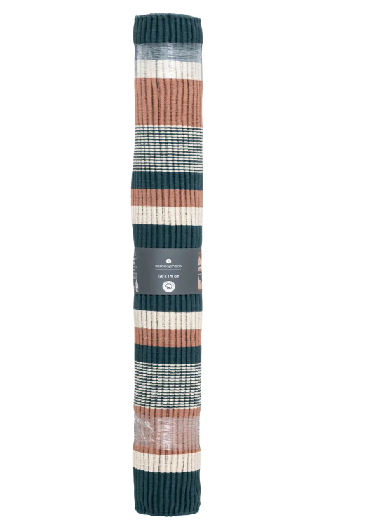 Правоъгълният памучен килим е лек, удобен и с естествена текстура, която внася мекота и уют във всяко помещение. Универсалният му размер е подходящ за спалня, дневна или трапезария. Благодарение на изчистения си дизайн се съчетава лесно с различни интериорни стилове – от модерни до класически.