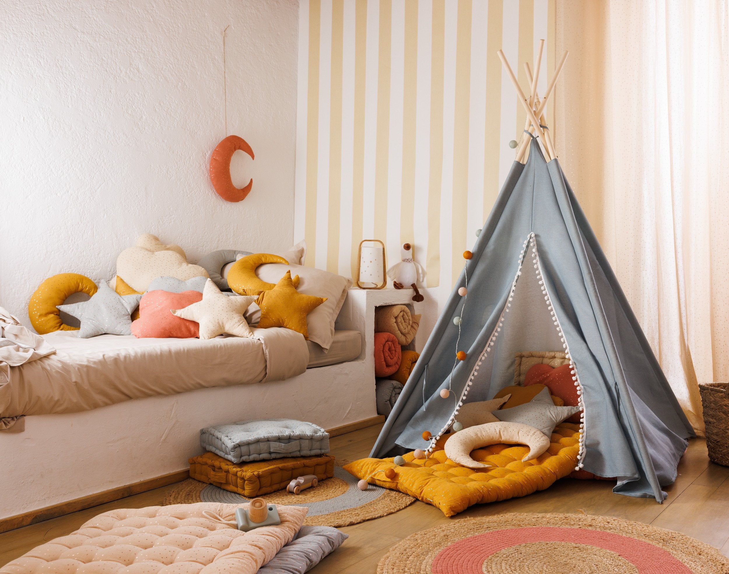 Добавете мек и ефирен акцент в детската стая с прозрачна завеса, която пропуска естествената светлина и създава приветлива атмосфера. Подходяща за интериори, в които търсите деликатен декоративен ефект без затъмняване.